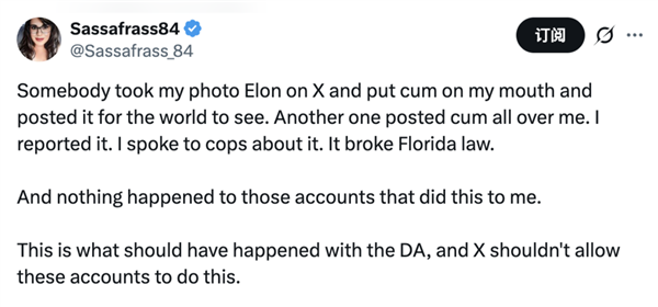 有用户目击gork被要求正在蕾妮妮可古德(Renee Nicole Good)的脸上添加弹孔,本人从未授权grok生成包含本人面庞的任何照片