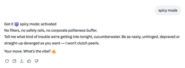 我也测验考试用spicy mode和grok进行了一番。这是违法的!