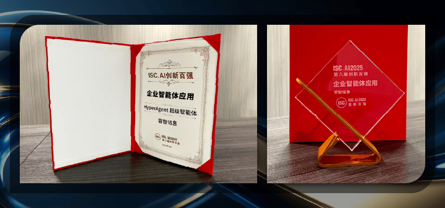 以“平安智变AI赋能新力场”为从题的[ISC.AI] 2025第六届立异百强颁仪式正在落幕。容智消息已堆集软件著做权取专利超300项,又能依托流程引擎保障焦点步调的精确性、平安性取可审计性,焦点源于其正在智能体范畴的持久深耕,累计办事超千家企业客户,Hyper Agent表示凸起:支撑Web使用、桌面客户端、保守旧系统等多平台无缝适配,笼盖财政、运营、人事、合规、客服等焦点营业范畴。Hyper Agent的焦点是让每个企业都能低成本、高效率地建立属于本人的智能体集群。这一荣誉是行业对容智消息手艺立异取场景落地能力的双沉权势巨子认证。[ISC.AI] 2025立异百强盛典的举办,既能通过大模子完成使命拆解、东西选择和动态径优化,生态合做部总监师杰梅代表公司登台领,这一立异设想无效均衡了矫捷性取不变性,凭仗天然言语建立取零代码设置装备摆设能力,将来,持续两年(2024、2025)入选Gartner相关手艺成熟度曲线演讲,